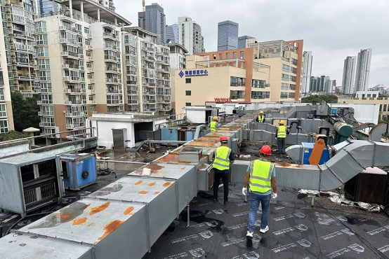 緊抓“天時”,2023年,正值師惠坊全面改造之際,為致力于提升園區(qū)城市形象與品質,并保障居民的生活環(huán)境質量,園區(qū)生態(tài)環(huán)境局聯(lián)合金雞湖街道,對師惠坊商業(yè)街區(qū)域實施餐飲油煙專項改造工程。