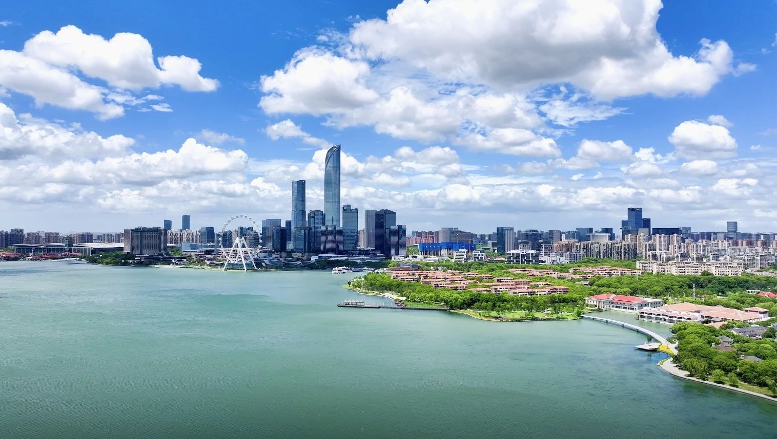 金雞湖右岸重點項目加快建設,涌動著發展活力,“蘇州之眼”摩天輪等地標建筑引得游人駐足流連。