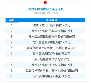 近日,江蘇省工業(yè)和信息化廳對擬認定的第七批專精特新“小巨人”企業(yè)名單完成公示。金雞湖商務(wù)區(qū)10家企業(yè)上榜。