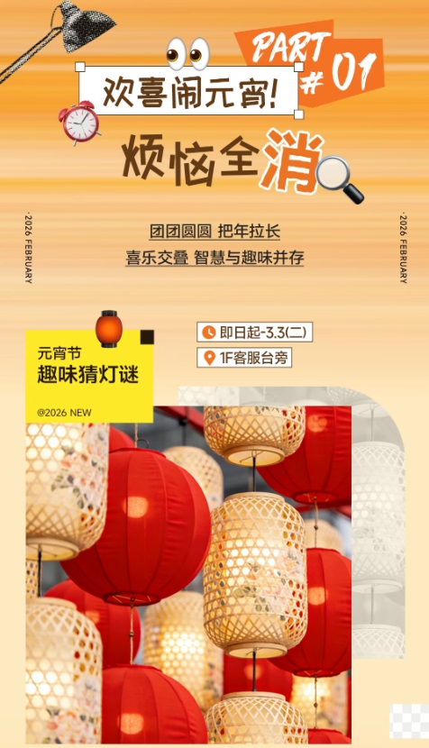 蘇州久光百貨:人間至味是團圓,元宵佳節,蘇州久光百貨推出“燈趣游園”特別企劃。活動當日,線上猜燈謎趣味互動、全館任意消費即可參與抽獎,贏取元宵好禮。