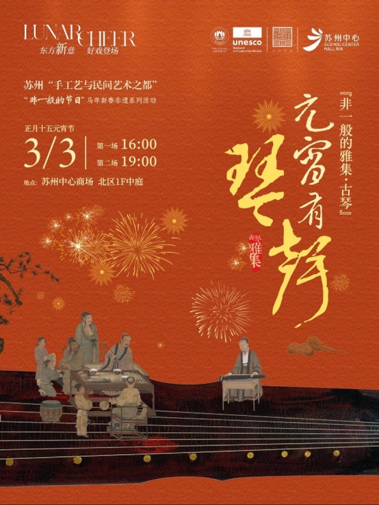 蘇州中心:3月3日,蘇州中心商場北區一樓中庭將舉辦“非一般的雅集?古琴”專場。指尖輕撥,清音流轉,邀市民與游客共赴一場滌蕩心靈的聽覺雅集。現場將奏響《賽馬》《梅花三弄》《上春山》等經典曲目,共設兩場演出,分別于16:00、19:00開場。元宵佳節,不妨移步蘇州中心,聽一曲清音入耳,共賞雅韻。