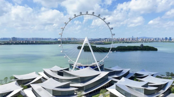從空中俯瞰,金雞湖的浪漫圖景已然立體:水上,游船旅拍、桃花島草坪婚禮等解鎖湖光里的甜蜜;陸地,中法愛墻結婚登記點、13.14公里環湖步道、李公堤文創街區、蘇州當代美術館,形成點線面聯動的婚拍矩陣;空中,蘇州之眼摩天輪推出云端告白專屬轎廂,圓融天幕街打造星空求婚場景……這些并非孤立的打卡點,而是被系統性地編織進甜蜜經濟的產業鏈條。商務區與喜筵網聯動,將聯合打造摩天輪求婚儀式、中法愛墻結婚登記、桃花島證婚儀式、中茵皇冠甲板婚禮等特色服務場景,水、陸、空三重浪漫交織相融,讓每一個浪漫瞬間都可定制、可消費、可傳播。