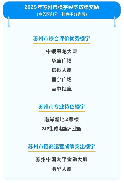 近日,2025年蘇州市樓宇經濟政策獎勵評選結果公布,金雞湖商務區表現亮眼,共9棟樓宇上榜。