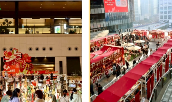 線下,商務區各大商貿載體同步發力、多點開花,蘇州中心、誠品生活、新光天地、久光百貨、金雞湖天虹等轄區商圈,精心開展新春促銷活動,推出年貨市集、新春福袋、心意贈禮等多項福利,結合非遺藝術展、年俗文化節等主題活動,營造濃厚新春消費氛圍,撬動文旅消費持續增長。