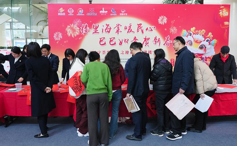 活動現(xiàn)場一片歡樂祥和的節(jié)日氛圍,前來領(lǐng)取春聯(lián)及福字的員工絡(luò)繹不絕,大家手捧著新鮮出爐的春聯(lián),臉上洋溢著幸福的笑容,對書法家們的精湛技藝贊不絕口。一位在國際大廈工作的員工表示:“在超市選購春聯(lián)雖然方便,但現(xiàn)場手寫的春聯(lián)更有溫度、更有年味。我拿到了一副很合我心意的手寫春聯(lián),一定要把這份福氣帶回家。”短短兩個小時內(nèi),現(xiàn)場就送出了約500副春聯(lián)和500個福字,將滿滿的福氣傳遞到每個人手中。