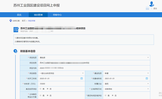 1.3.1. 點擊項目名稱后方的“申報”按鈕,打開項目基本信息完善頁面,填寫必填的信息