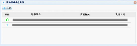 2、點擊用地批準手續、建設工程規劃許可、施工圖審查合格書后“+”(注圖1);在彈出窗口中點擊操作欄中“+”補選對應材料,點擊操作欄中
