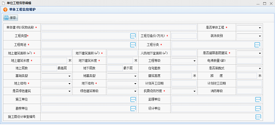 在圖注4-1頁面點擊“新增單位工程”按鈕彈出圖注4-2單位工程列表窗口;點擊復制單位工程按鈕或圖注4-2中“新增單位工程”可彈出圖注4-3新增單位編輯窗口。