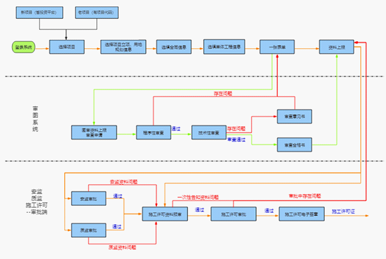 申請施工許可證請如下步驟操作:首先選擇施工許可申請的項目進入“工程項目建設施工許可并聯申報”系統;然后新增施工許可申請,根據申請向導窗口選擇本次施工許可申請所涉及的用地批準手續、建設工程規劃許可、中標通知書(如有)、施工圖審查合格書(如有)、已登記合同和單位工程信息等生成施工許可的數據資料,最后將所需要的表格和申請資料補充完整、上傳完畢后提交確認。并聯審批提交后系統將相關信息自動分別傳到省安監系統、省質監系統、省施工許可系統由對應審核部門在相關系統中審核。