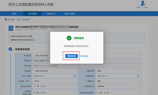 1.3.10. 填寫完成之后,點擊保存按鈕,保存成功之后點擊“繼續申報”