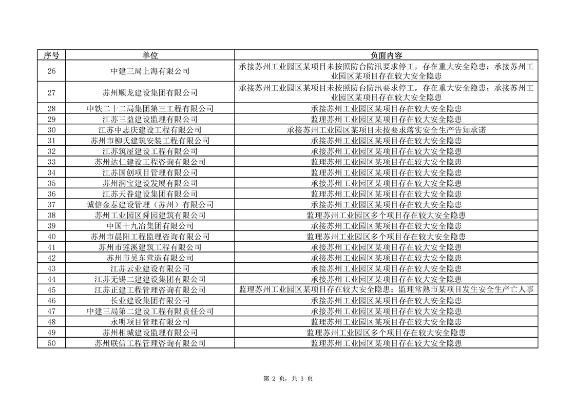蘇州工業園區建筑施工安全生產告知承諾負面清單