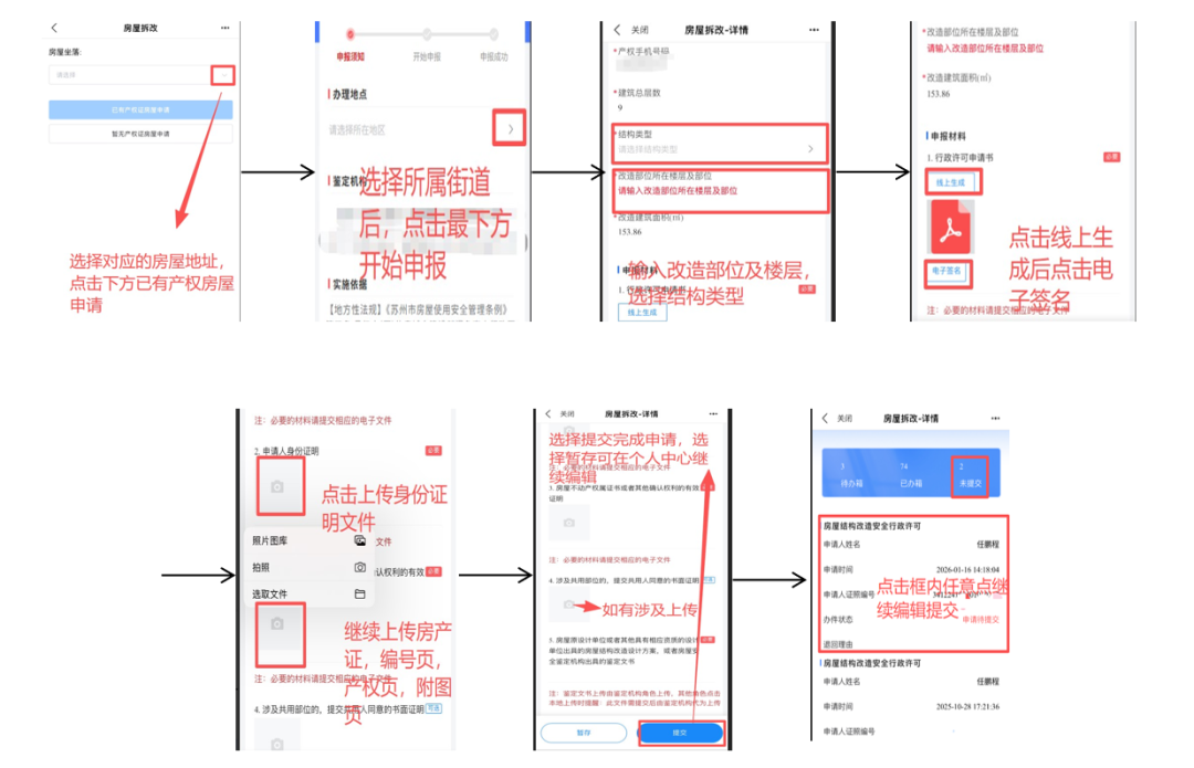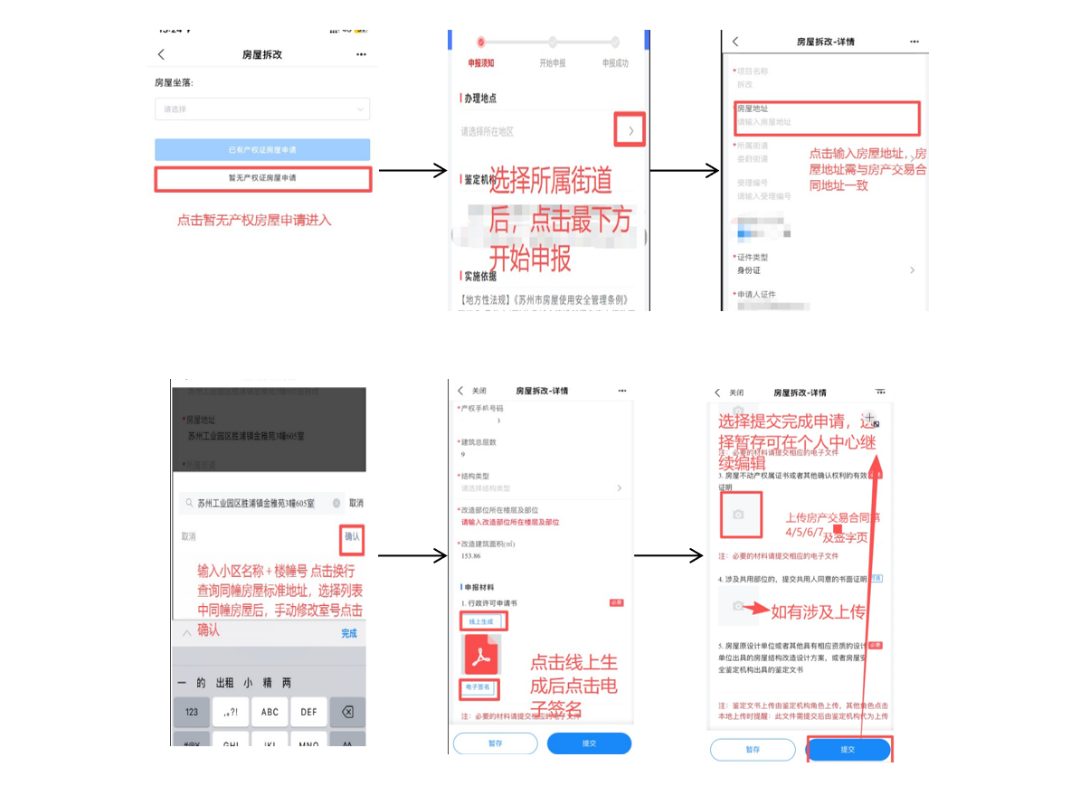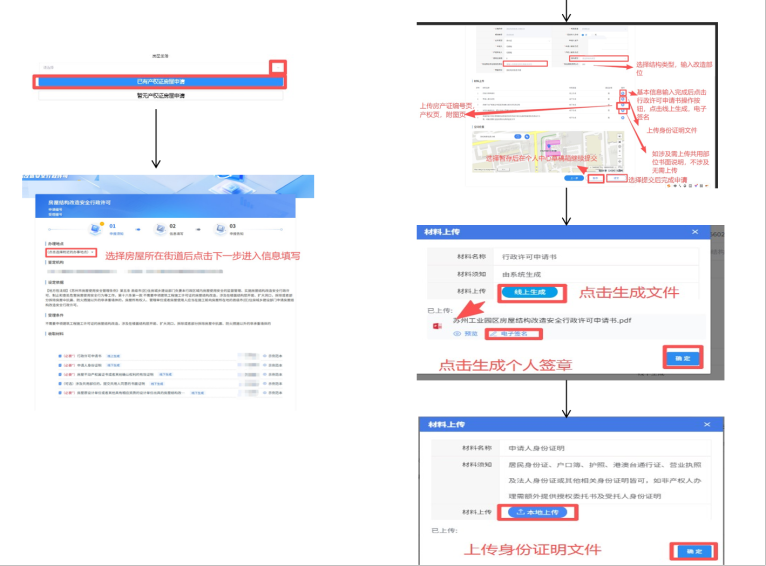 產權人可通過以下兩種方式進行線上申請:手機端:打開支付寶,搜索“蘇州園區不動產”,進入首頁后選擇“房屋結構改造許可”進入申請頁面。電腦端:訪問網址(互聯網+不動產交易平臺)https://ebdc.sipac.gov.cn/mhweb/,點擊“房屋拆改”進入。