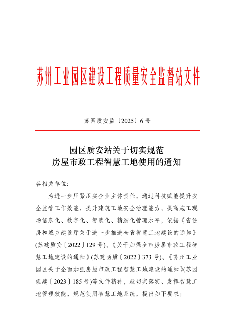 園區(qū)質(zhì)安站關(guān)于切實規(guī)范房屋市政工程智慧工地使用的通知