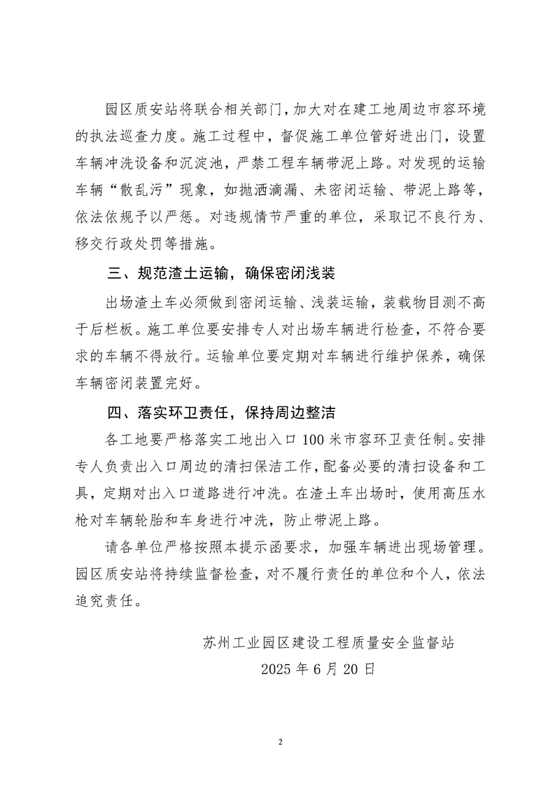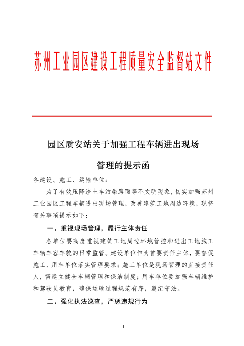 園區質安站關于加強工程車輛進出現場管理的提示函