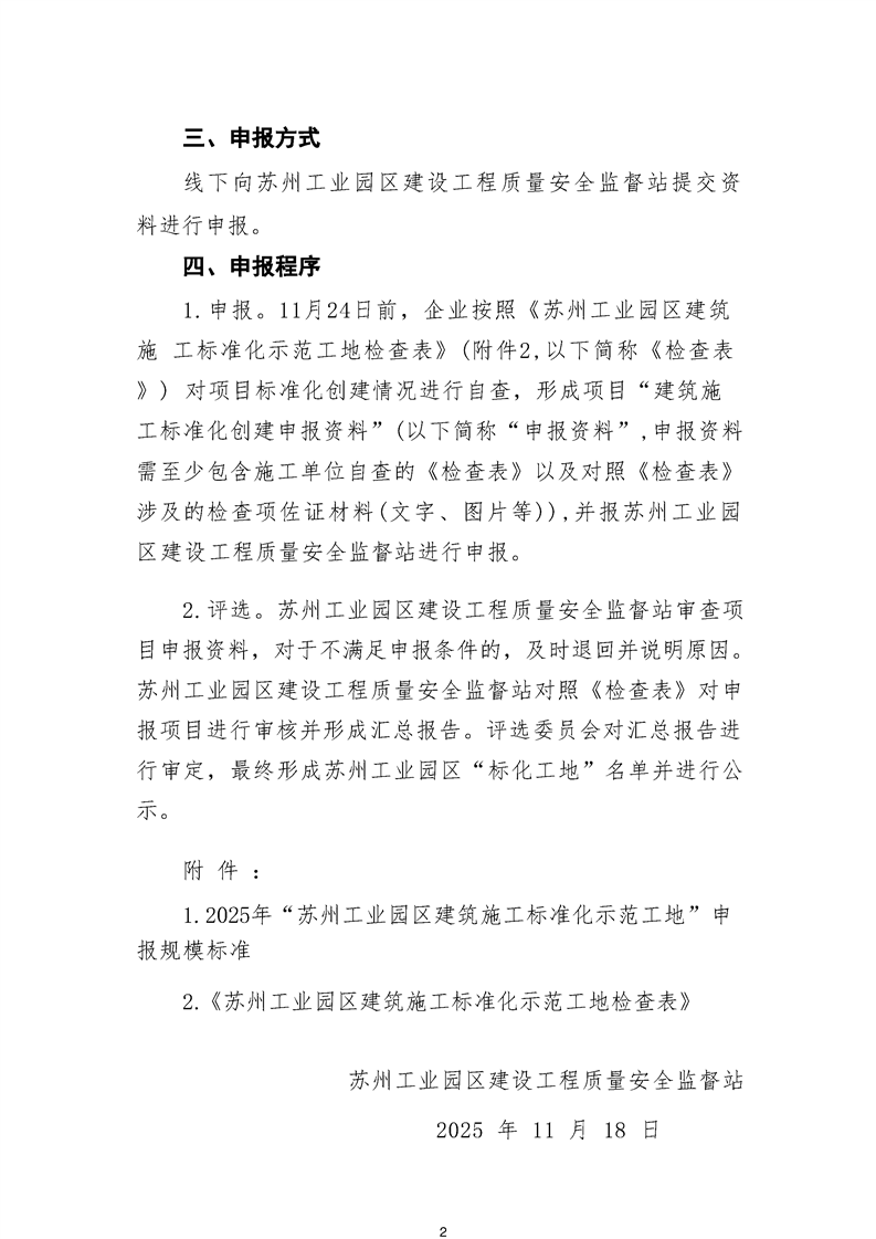 關于組織開展2025年“蘇州工業園區建筑施工標準化示范工地”申報工作的通知