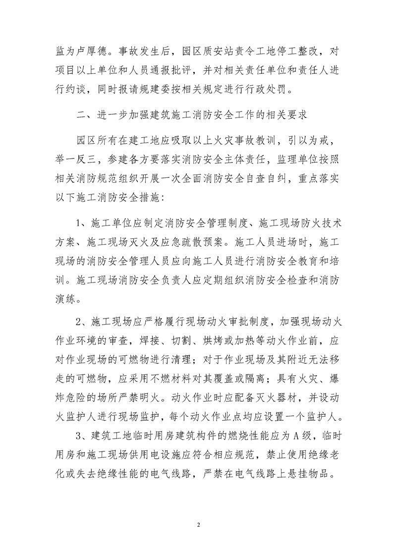 園區質安站關于進一步加強蘇州工業園區建筑施工消防安全管理的通知