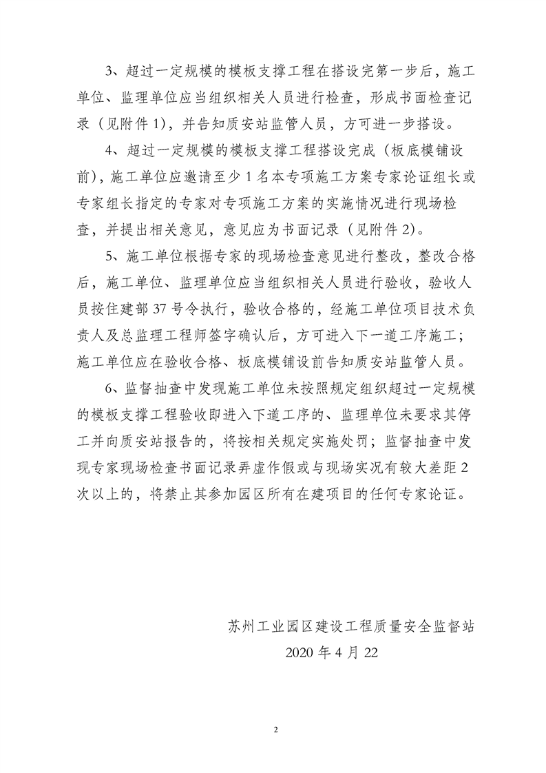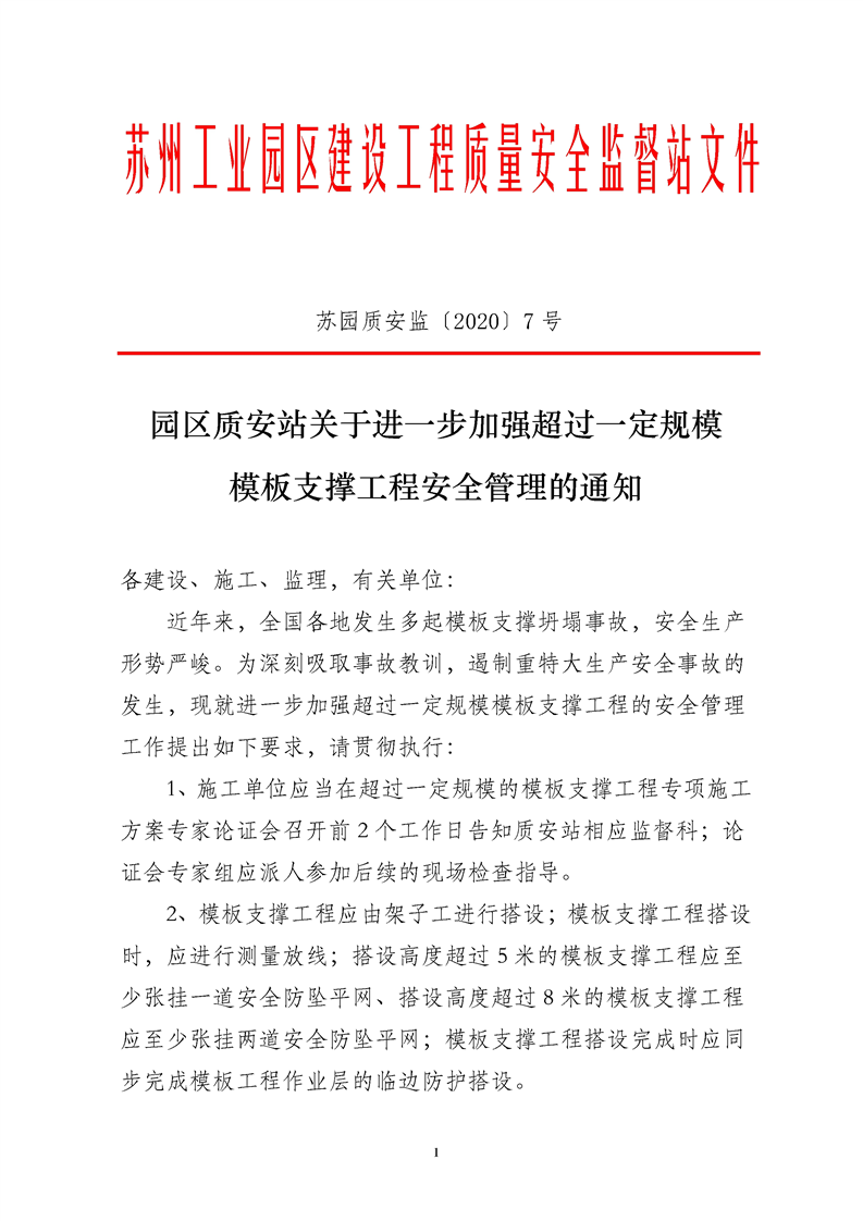 園區質安站關于進一步加強超過一定規模模板支撐工程安全管理的通知
