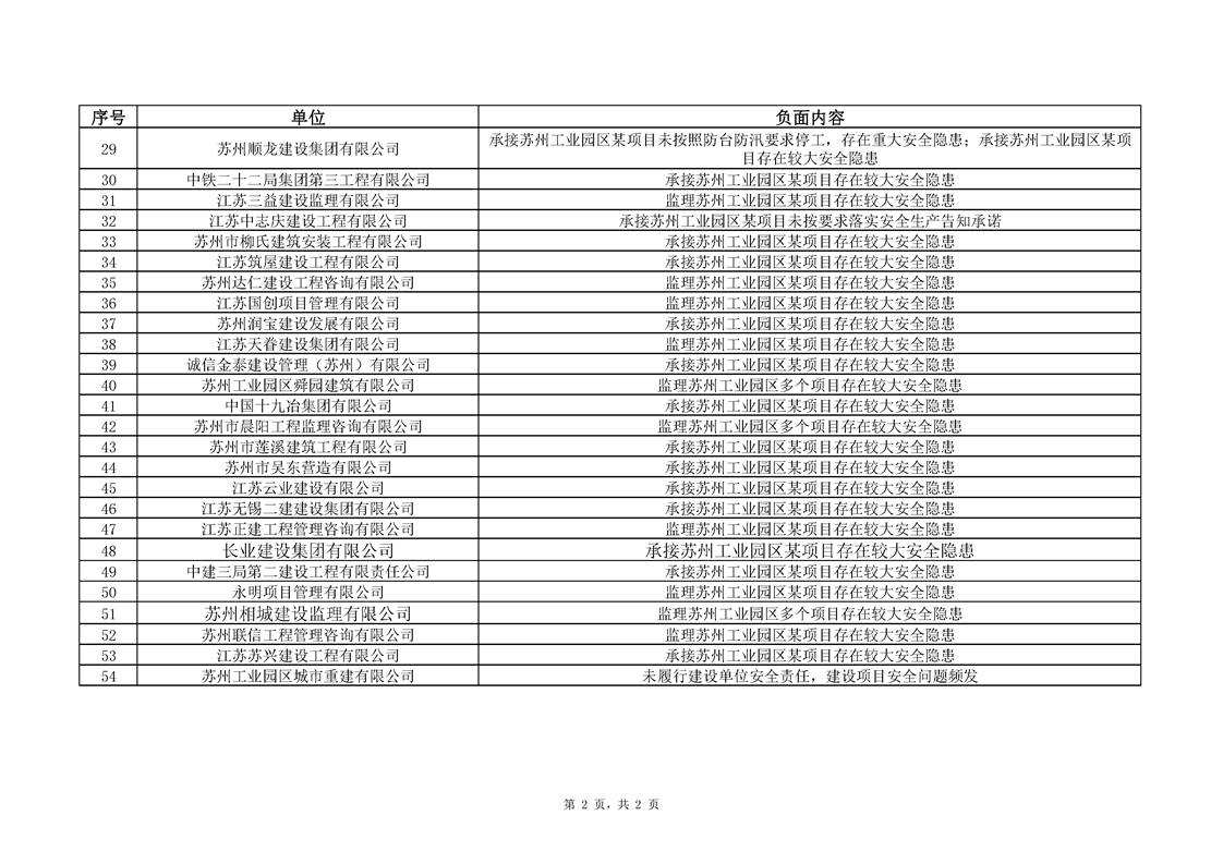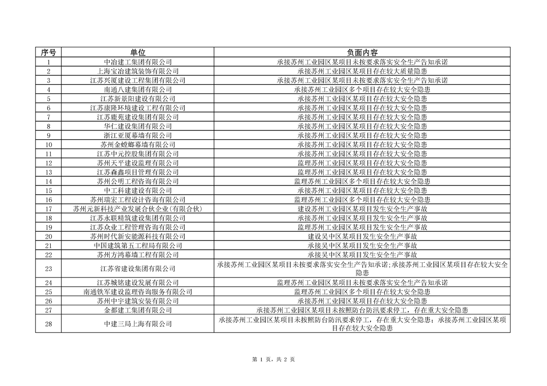 蘇州工業園區建筑施工安全生產告知承諾負面清單