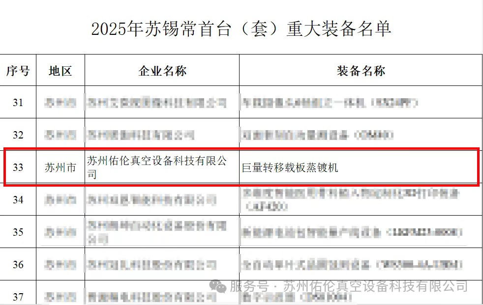 近日,蘇州工業(yè)園區(qū)科技招商中心引進(jìn)企業(yè)——蘇州佑倫真空設(shè)備科技有限公司(以下簡稱“佑倫真空”)自主研發(fā)的《巨量轉(zhuǎn)移載板蒸鍍機(jī)》榮獲2025年蘇錫常首臺(套)重大裝備認(rèn)定。