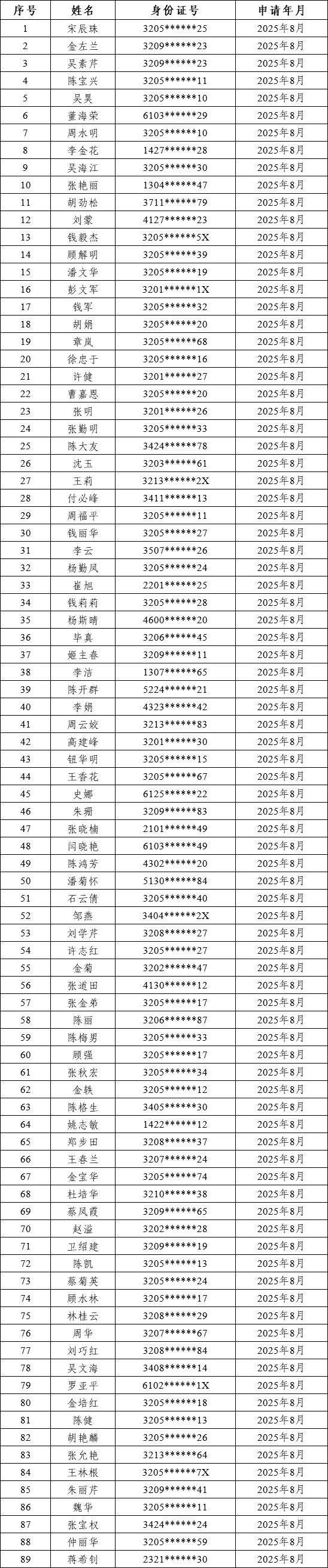 根據《江蘇省就業補助資金管理辦法》精神及業務有關規定,現將2025年8月園區靈活就業社保補貼新增人員相關信息進行公示,接受社會監督。公示期限為7天,公示自發布之日起。