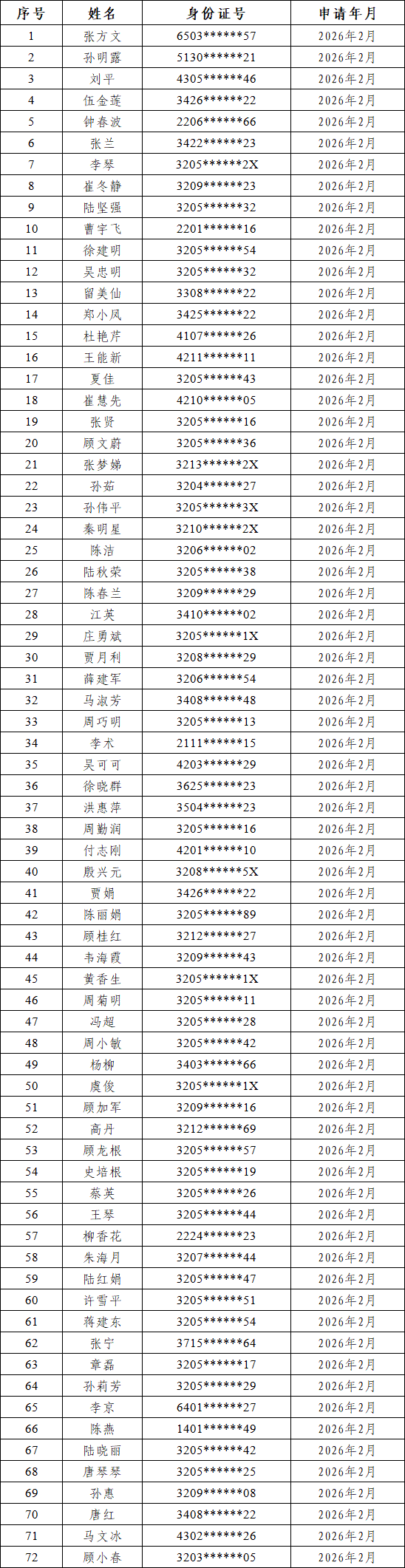 2026年2月靈活就業(yè)人員社保補貼新增符合人員公示名單