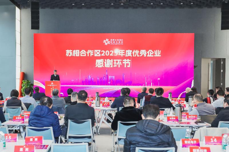 企業(yè)是推動蘇相合作區(qū)高質(zhì)量發(fā)展的主力軍、中堅力量,更是合作區(qū)建設高端制造集聚區(qū)的核心動能。此次大會上,合作區(qū)對2025年度在經(jīng)濟發(fā)展、同心共建、合作共贏、社會責任等領(lǐng)域表現(xiàn)突出、成效顯著的優(yōu)秀企業(yè)進行集中致謝,福耀玻璃、美的清潔電器、易德龍、卡士酸奶等一批優(yōu)秀企業(yè)代表上臺接受感謝狀。這份認可,是對企業(yè)實干篤行、勇于擔當?shù)目隙ㄅc褒獎,也是政企同心、攜手并肩、共創(chuàng)未來的堅定承諾。