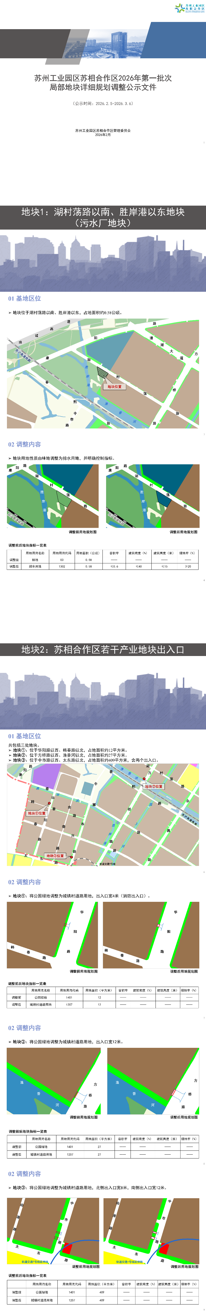 蘇相合作區2026年第一批次局部地塊詳細規劃調整公示