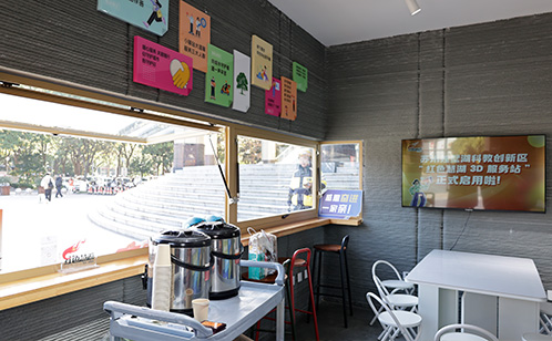 “紅色慧湖3D服務站”全程采用3D打印技術建造而成,將科技感融入建筑設計,集安全與環保于一體,鏈接蘇州獨墅湖科教創新區高校黨建聯盟、蘇州獨墅湖科教發展有限公司、蘇州工業園區公安分局永安橋派出所、蘇州工業園區斜塘街道林泉社區、文星廣場商戶等“近鄰”單位優勢,通過共駐共建、互聯互動等方式,全方位多維度地建設“身邊的N種驛站”。