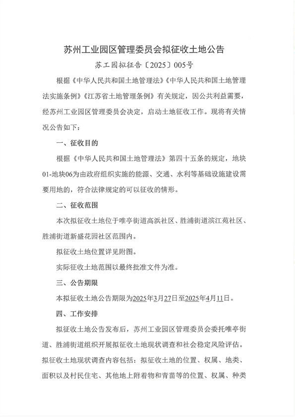 蘇工園擬征告〔2025〕005號--擬征收土地公告