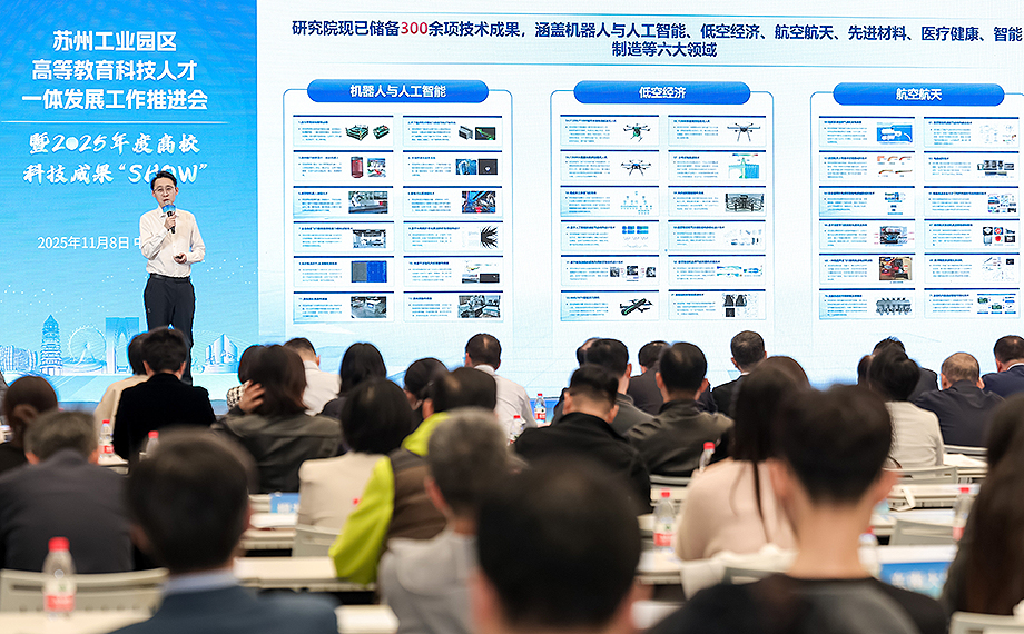 去年,園區發布了《蘇州工業園區推進高等教育科技人才一體化示范發展行動計劃》,引導高校面向產業需求,在人才培養、科研創新、產學研合作、成果轉移轉化等方面精準發力,成功探索出一條教育、科技、人才三位一體、協同并進的實踐路徑。科教創新區內33家高校積極響應,各展所長,取得顯著成效。活動現場就2025年度高校科技成果轉移轉化“成績單”和特色工作進行了集中展示和交流。