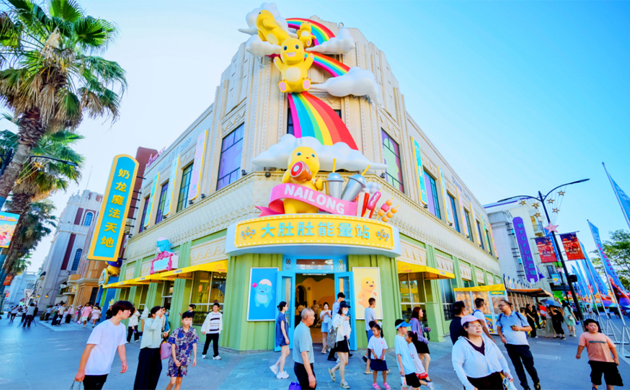 樂(lè)園首先是引入奶龍這一國(guó)民級(jí)IP,同時(shí)打造了全國(guó)首個(gè)也是最大的奶龍IP主題游樂(lè)區(qū)——“奶龍魔法時(shí)光主題區(qū)”,其占地超3萬(wàn)平方米,涵蓋30余項(xiàng)互動(dòng)設(shè)施與主題演藝,覆蓋全齡段客群,開(kāi)業(yè)以來(lái)已成為親子家庭與年輕游客的熱門(mén)打卡地;特別是在游樂(lè)區(qū)內(nèi)有華東首個(gè)且最大的奶龍室內(nèi)家庭娛樂(lè)中心,其游玩的豐富性與室內(nèi)安全恒溫成功激活了全齡段全時(shí)段消費(fèi)潛力。