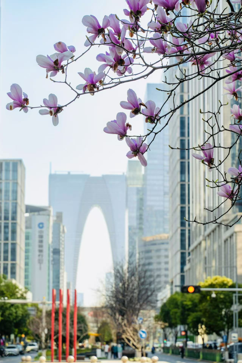 作為春信的使者,玉蘭花用一場無需綠葉襯托的綻放,喚醒滿城春光。金雞湖畔,以城市地標東方之門為背景,一樹樹玉蘭亭亭玉立枝頭,盡顯清雅。從蘇州小“鳥巢”到春到湖畔廣場,從白塘公園到半月灣,漫步玉蘭樹下,潔白似雪、粉紫若霞的花朵與城市建筑、藍天白云相映襯,將春日的氛圍感直接拉滿。
