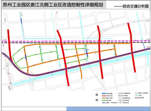 快速路:婁江快速路。快速路采用高架形式,與主干路相交采用立體交叉口形式。