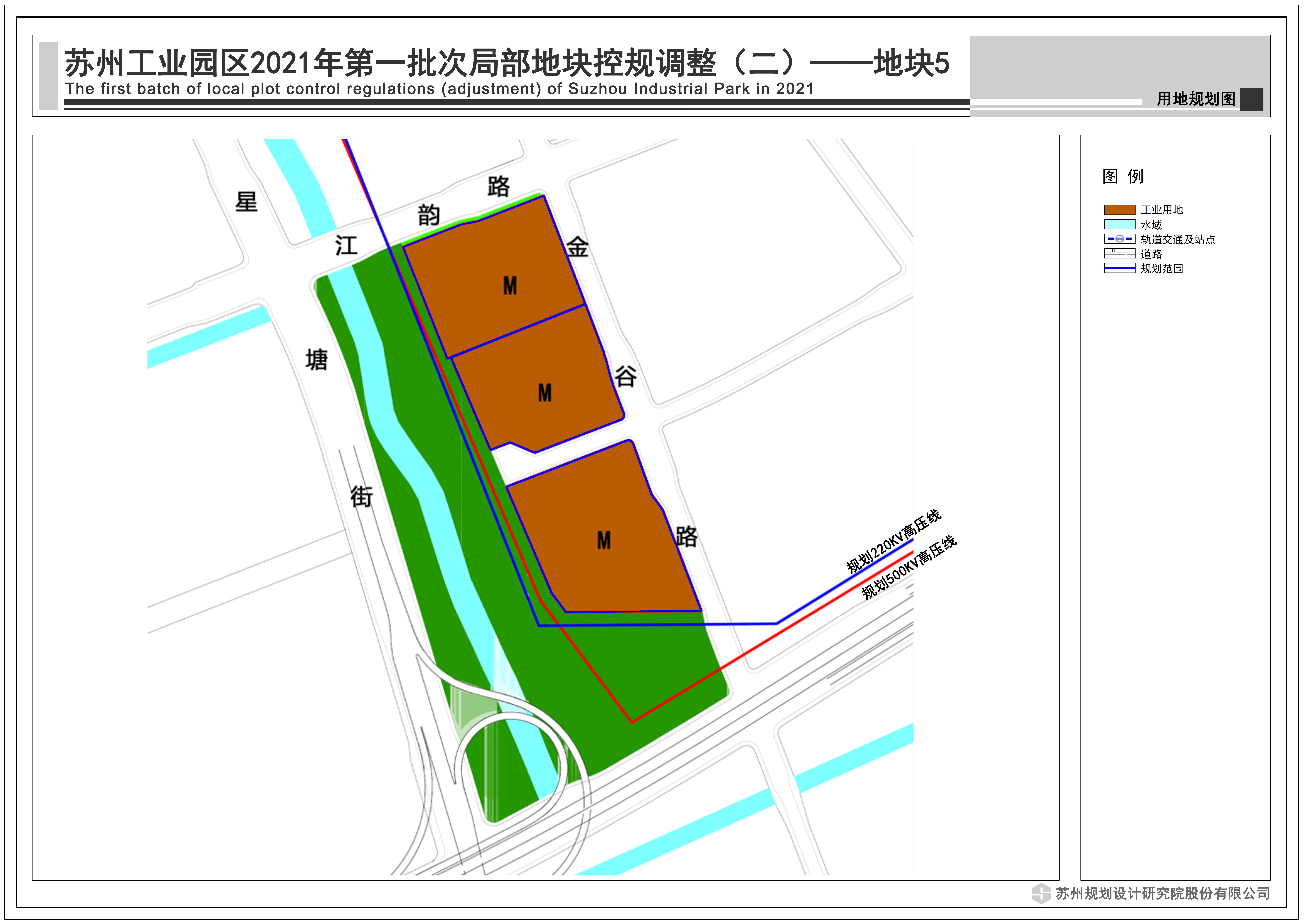 為滿足上市企業產業園北區西側新增500KV高壓線安全規范要求,需將原規劃物流倉儲用地調整為工業用地,同時根據500KV高壓線中心線的15米退線要求,調整工業地塊紅線。