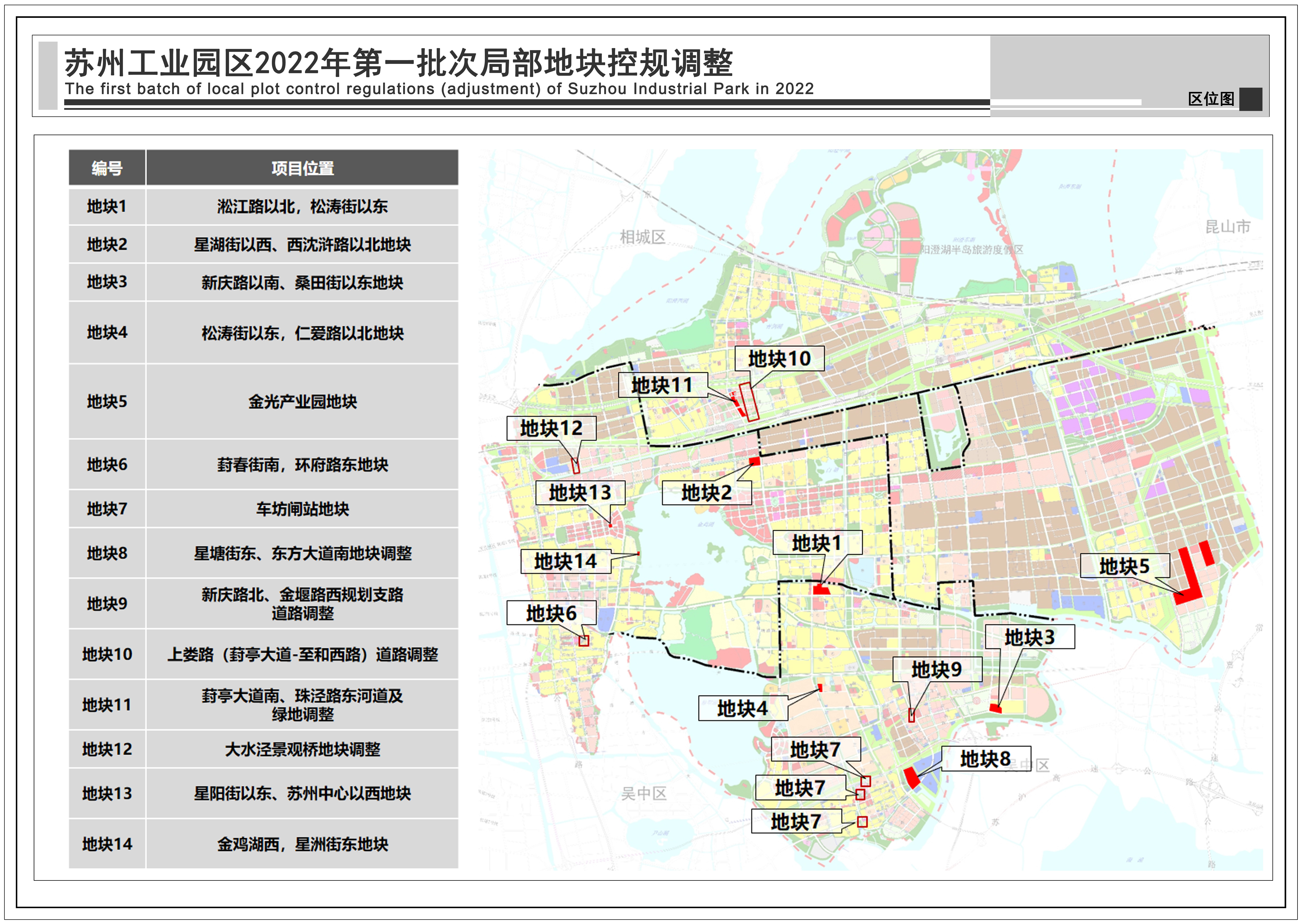 蘇州工業(yè)園區(qū)2022年第一批次局部地塊控規(guī)調(diào)整:共包括14個地塊,總用地面積1.08平方公里,詳見附圖區(qū)位圖。