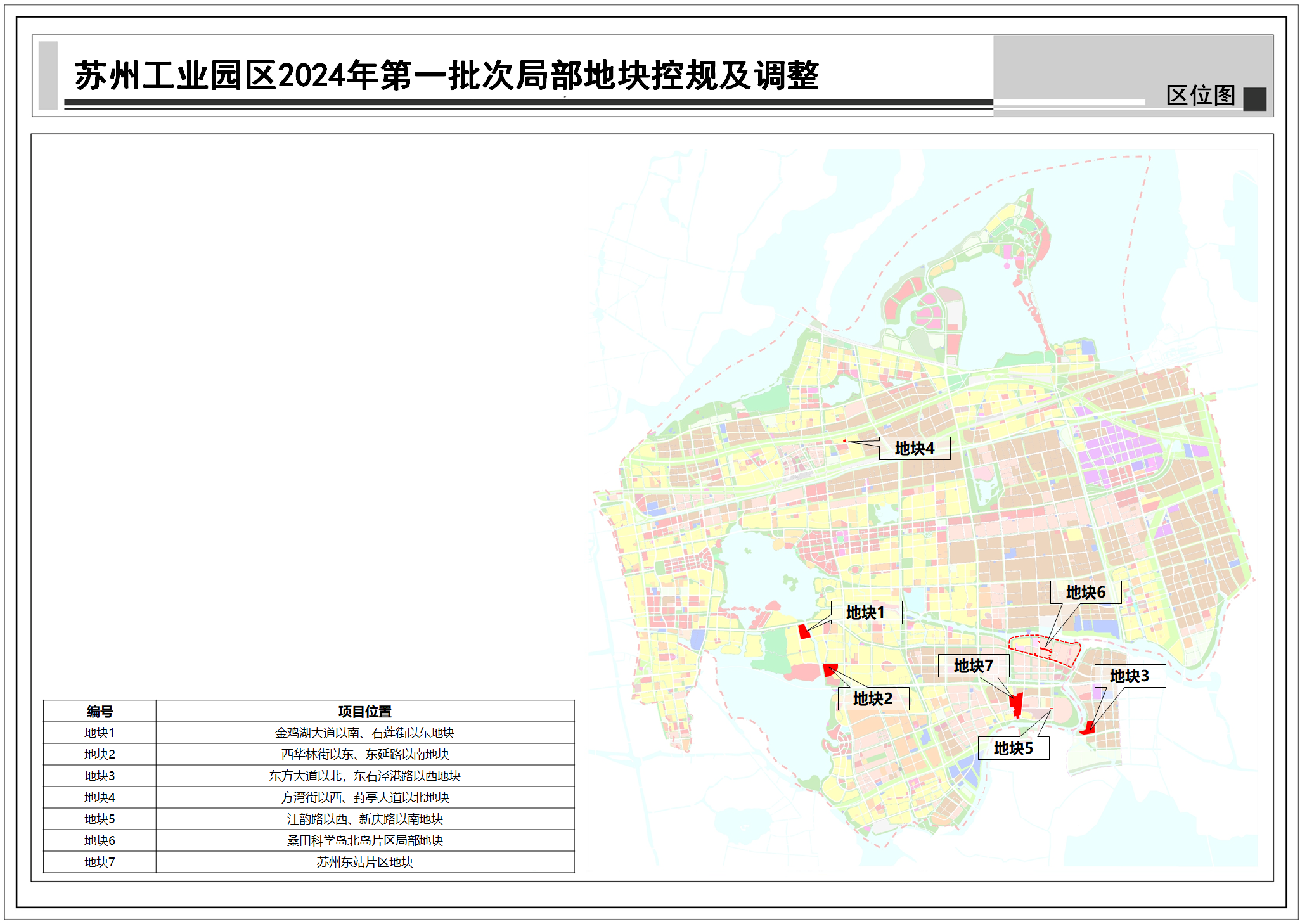 蘇州工業(yè)園區(qū)2024年第一批次局部地塊控規(guī)調整:共包括7個地塊,總用地面積約0.69平方公里,詳見附圖區(qū)位圖。