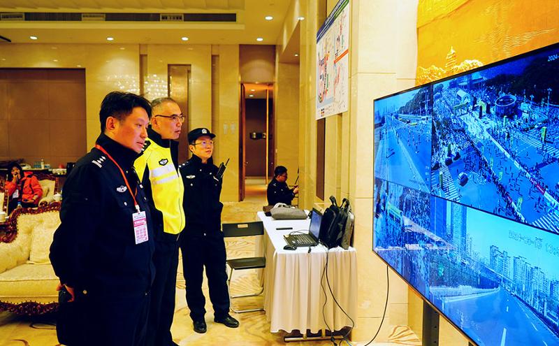 園區公安はさらに各方面を統括し、大會前の安全保障準備を萬全にし、大會管理措置を著実に実施し、場外の便民サービスを最適化にした。ドローンを使用してコース全域を巡回監視し、総合法執行、市政管理、消防救助、巡回警備など外部の各方面の力との協調を強化し、園區公安情報指揮センター、現場指揮部と協力して、現場の人流、秩序、治安などの情報を把握し、大會の安全を力強く保障した。