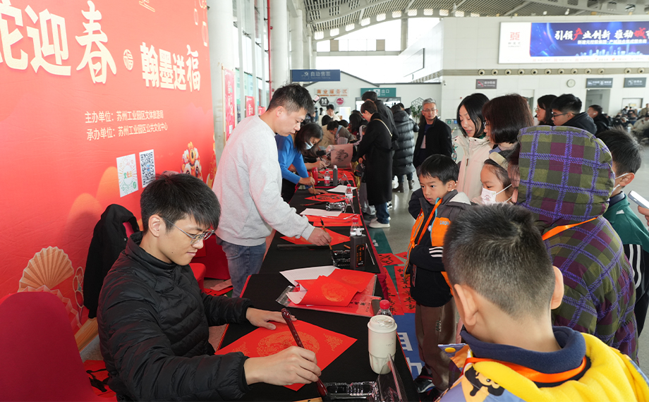春節臨近,年味漸濃。今年是中國春節申遺成功后的首個“非遺版”春節,為營造歡樂、祥和、喜慶的節日氛圍,1月22日,由蘇州工業園區公共文化中心舉辦的“非遺賀新春 潮趣過大年”春風行動走進蘇州園區站,將滿滿的關懷與濃濃的年味送到群眾身邊?;顒蝇F場,紅紙鋪展,墨香四溢。書法家們揮毫潑墨、筆走龍蛇,一副副蘊含深情祝福的春聯躍然紙上。他們以筆傳情,以墨達意,一筆一劃都凝聚著對傳統文化的熱愛與傳承。乘客們紛紛圍攏過來,欣賞書法大師們的精湛技藝,并爭相領取春聯,希望將祝福帶回家中,為新的一年增添喜慶與祥和。乘客陸女士說:“活動的大紅色展板很醒目,很有年味,我立刻被吸引過來。我是打算回鎮江的... [詳細]
