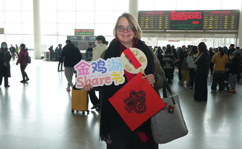 蘇州園區站黨支部書記華文榮提到:“我們特意選擇在小年舉辦這個活動,人流量適中,乘客可以很好地參與體驗,感受年味。通過活動,我們將閱讀、藝術、非遺,在同一個場景完美交融,讓春節更富文化韻味,也讓城市更具人文氣息。”