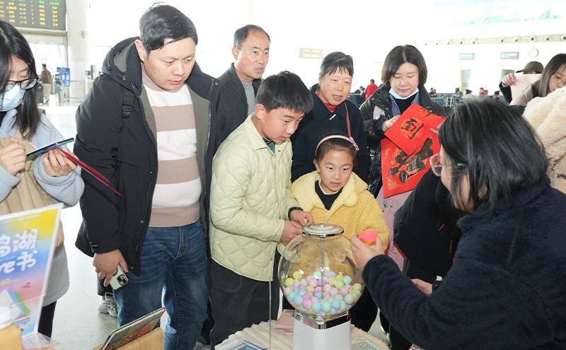 乘客陸女士說:“活動的大紅色展板很醒目,很有年味,我立刻被吸引過來。我是打算回鎮江的,書法老師們寫的春聯、福字,我挑了一些帶回去,家人們一定也非常高興。”另一位現場體驗的小朋友則興奮地表示:“以前我都是和家人一起買春聯、福字,今天在老師指導下,我自己寫了帶蛇圖案的福字,等回到家我要把它貼在門口。”
