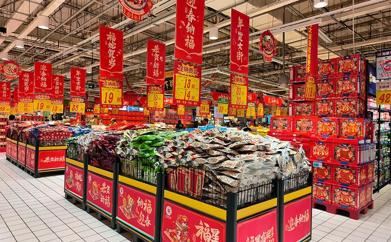 除了鄰里中心,園區(qū)可置辦年貨的大型商超還有很多。大潤發(fā)金雞湖店同樣布置了年貨大街,對聯(lián)、剪紙、中國結、福字、等各種春節(jié)飾品,將商場妝點得年味十足。作為一年一度的春節(jié)購物狂歡盛典,今年大潤發(fā)匯聚了千余款精選年貨商品,從糧油、生鮮、干貨,到酒水、特產(chǎn),品類齊全,應有盡有。