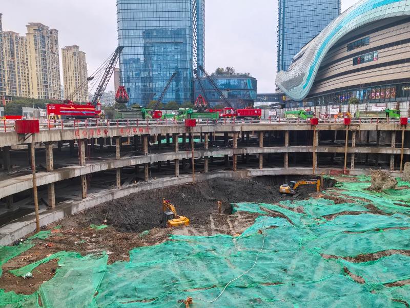 中建財富中心項目位于星陽街以東、蘇繡路以南地塊,地處園區湖西CBD核心區域,臨近中南中心、東方之門以及蘇州中心。項目占地約1.96萬平方米,包含一棟460米的超高層塔樓,以及一棟裙房,總建筑面積約41萬平方米。其中地下共五層,埋深約27m,目前正處于土方開挖施工階段。