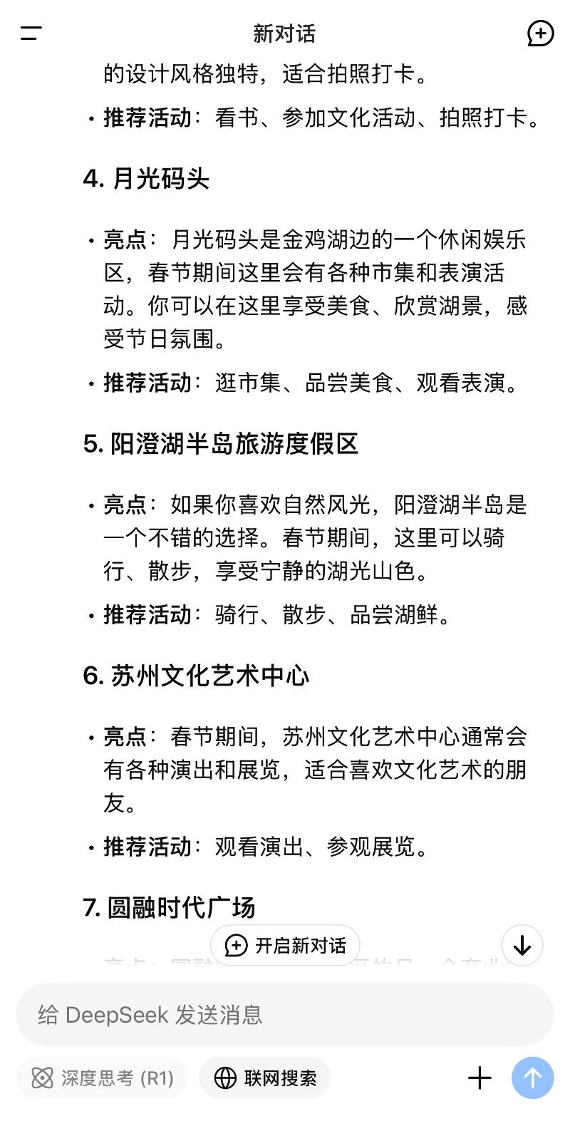 DeepSeek可真是太懂園區啦!作為時尚潮流的現代化城市,園區端出“游住購行”一站式新春盛宴,各大商圈聯動景點,打響“新春鬧市集”品牌,營造充滿年味與文化韻味的歡聚體驗,讓市民游客感受非一般的“酥”年。下面跟著DeepSeek一起玩轉“年味版”園區吧!