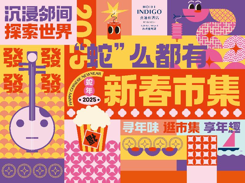 蘇州金雞湖英迪格酒店推出“‘蛇’么都有新春市集”,邀請賓客一起尋年味、逛市集、享年趣。下午茶時間,游客們在金雞湖畔,邊喝茶邊聽評彈,享受團圓的愜意時光。