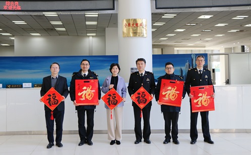 當天,高貿區黨工委、管委會領導將春聯和福字送到了綜保大廈內海關、稅務、行政審批局等一線服務部門工作人員手中,對他們的辛勤付出表示感謝,并送上新春祝福和誠摯問候。