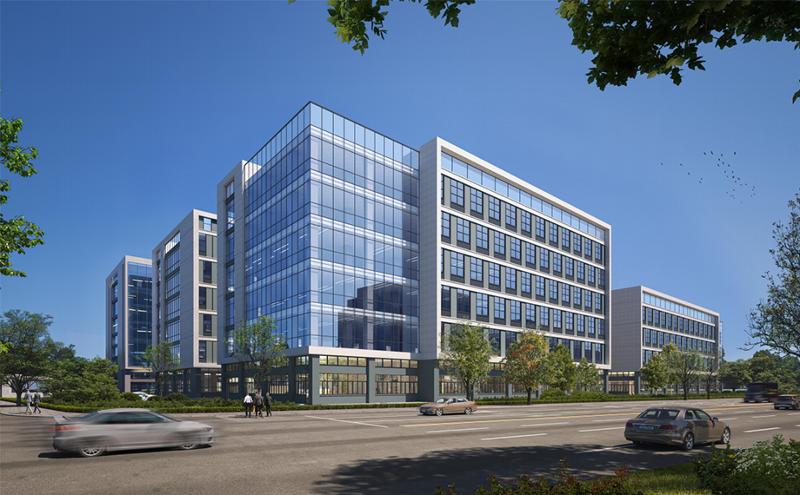 新項目計劃新建6棟5層工業(yè)廠房和若干輔房,總建筑面積89954.14平方米,綠地面積5500平方米,容積率由0.56提升至2.46。新園區(qū)以現(xiàn)代化高品質(zhì)為標準,采用淺色石材顆粒涂料搭配玻璃幕墻,與周邊地塊形成統(tǒng)一的色彩效果。