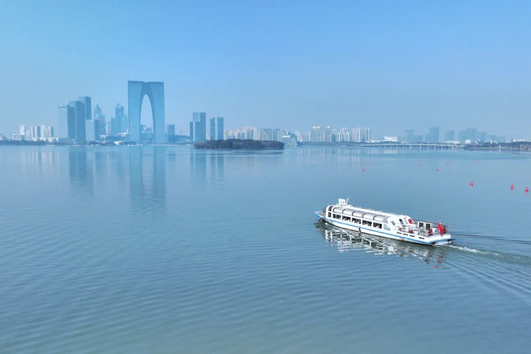 為提升水上旅游服務品質,園區加大運力、拓展航線,右岸新航線串聯起園區金雞湖水上靚麗風景線,助力打造金雞湖右岸場景串聯、客流聯動、人氣共享的文旅消費新場景。新航線包含日游和夜游,其中日游為登島線,沿途觀賞當代美術館、“蘇州之眼”摩天輪、“飛翔”雕塑等城市地標后,登上桃花島游覽;夜游為環湖線,串起蘇州文化藝術中心、東方之門、金雞湖音樂噴泉等標志性景觀,充分滿足游客不同時間段的多元體驗需求。