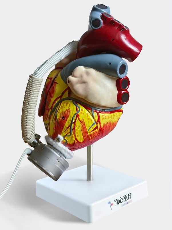 同心醫療經過十多年源頭創新,通過分立式磁懸浮設計、流體力學優化設計及經皮電纜設計等多項國際首創技術,成功開發了新一代全磁懸浮人工心臟慈孚?VAD(型號:CH-VAD),該產品在血液相容性、植入侵犯性、防感染性等關鍵性能方面達到了國際領先水平。