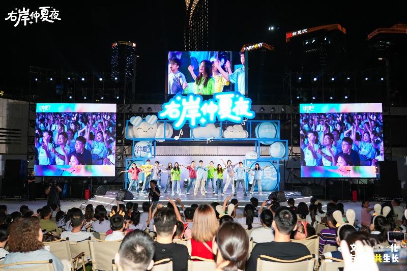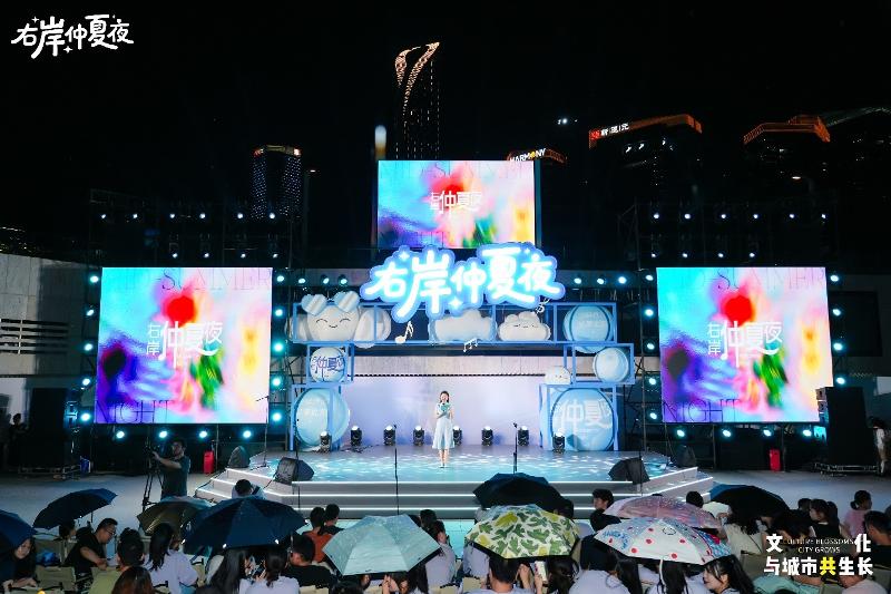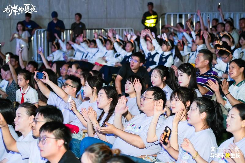舞臺(tái)下,觀眾們也是熱情滿滿,一邊揮動(dòng)手機(jī)照明燈,一邊跟著旋律哼唱,一曲結(jié)束,隨即給予歡呼和掌聲。慕名而來的游客劉女士就在演出中收獲了滿滿感動(dòng):“之前就在社交媒體上看到了右岸仲夏夜活動(dòng),現(xiàn)場(chǎng)感受更加特別。教師節(jié)專場(chǎng)回憶BUFF疊滿,師生互動(dòng)更加溫馨感人!”