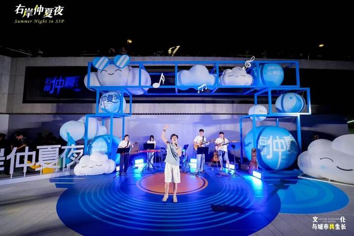 “園區(qū)對藝術,尤其是音樂的包容度是非常好的。”聚光燈下,主唱佩琦深情表白,她既是園區(qū)大學生“筑夢計劃”培育的優(yōu)秀人才,也是首屆“蘇州好歌曲”冠軍得主。從蘇州大學音樂學院畢業(yè)后,她便扎根于此組建樂隊、追逐夢想,園區(qū)豐富的比賽演出平臺以及活躍的音樂協(xié)會社群,為這群年輕人提供了不可或缺的養(yǎng)分。